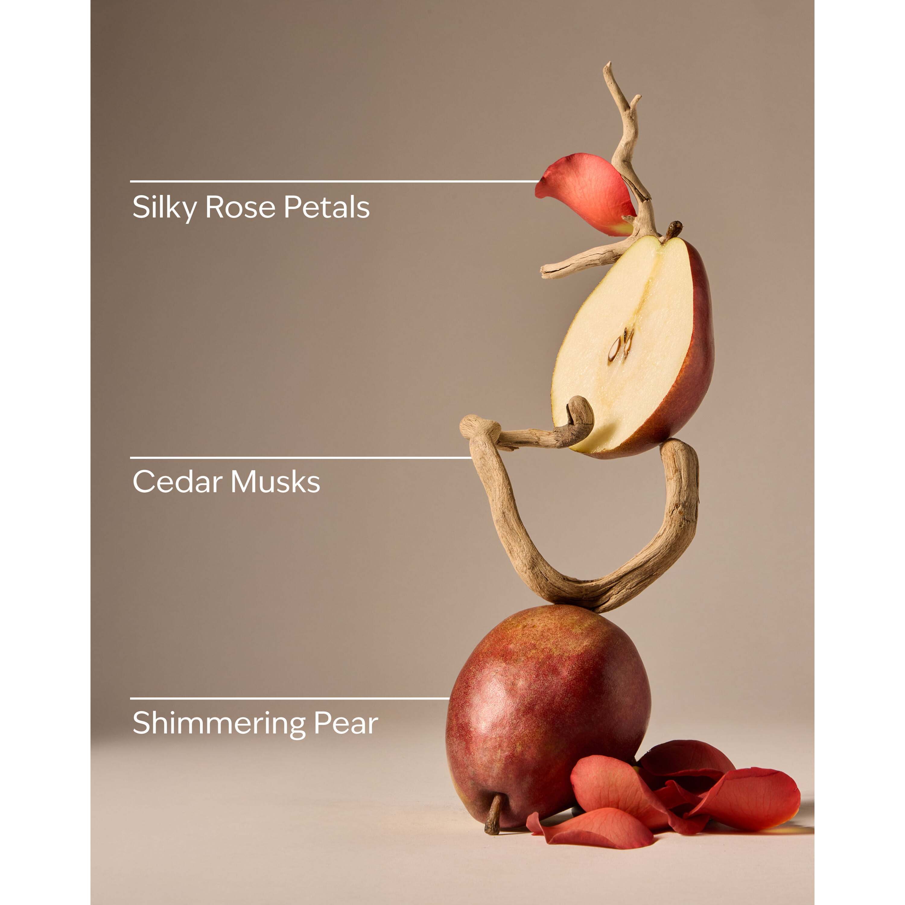 Fragrance Notes: Shimmering Pear, Silky Rose Petals And Cedar Musks.
